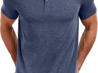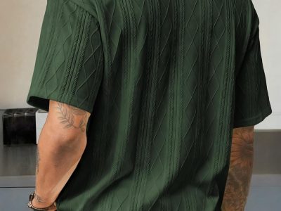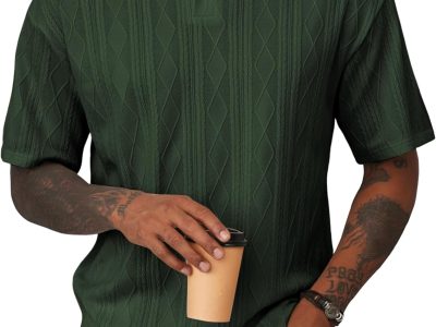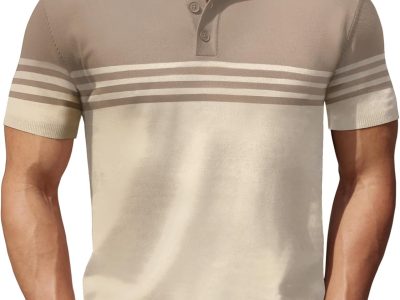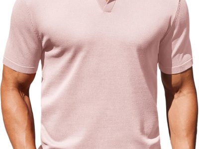 Men’s Short Sleeve Polo Shirts Vintage Knitted Shirt Casual Button Down Golf Shirts