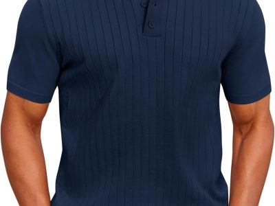 Men’s Knit Polo Shirts Short Sleeve Ribbed Knitted Shirt Summer Lightweight Casual Golf Shirts