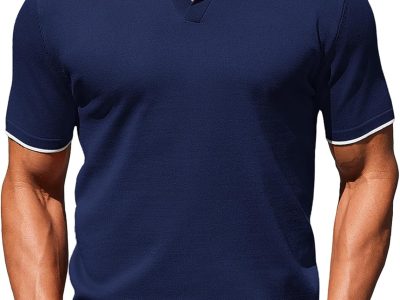 Men’s V Neck Short Sleeve Stretch Knit Polo Shirt