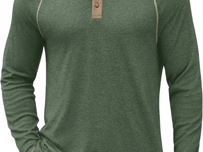 Mens Long Sleeve Polo Shirts Casual Button Collared Shirts Raglan Golf T Shirt