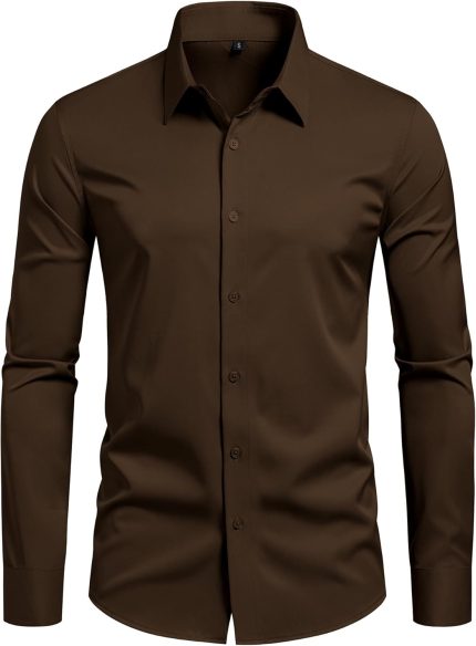 Mens Dress Shirt Ultra Wrinkle Free Stretch Regular Fit