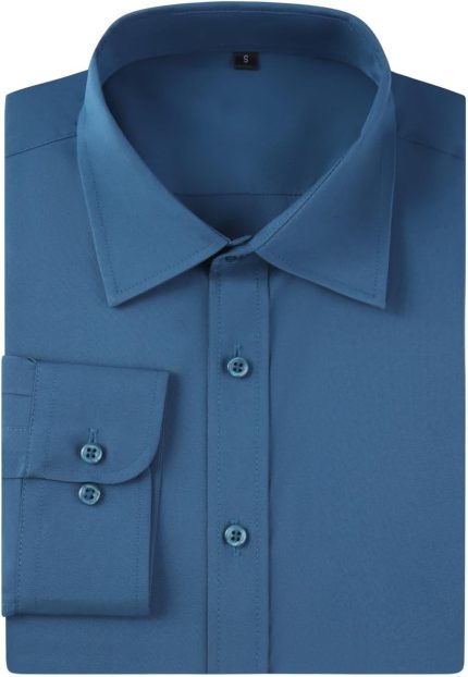 $43Dress Shirts for Men’s Long Sleeve Button Down Shirt Slim Fit Business Formal Stretch Shirt