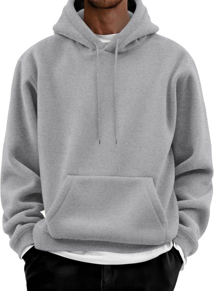 Men Cotton Fleece Hooded Sweatshirt Casual Long Sleeve Hoodies Pullover Fashion Drawstring Hoodie with Kanga Pocket